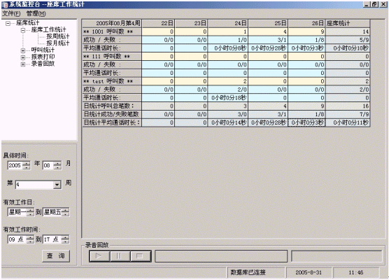 - 坐席功能,坐席人員通過電腦鼠標(biāo)操作,取新客戶資料,點擊撥號,同時,用鼠標(biāo)操作記錄撥號過程和通話過程的一些設(shè)置(撥號成功、忙線、無人接、客戶反饋信息等)。坐席電腦將分類顯示忙線電話列表、無人接電話列表、感興趣客戶列表等信息,以便做下一輪撥號參考。