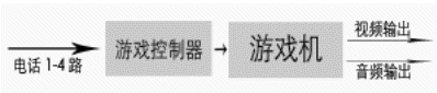 由于許多地區(qū),尤其是縣級市沒有信息平臺(tái),而且許多電視臺(tái)愿與電話局直接合作。在這種情況下,電話局和電視臺(tái)合作對有線用戶公布 特服號碼,如123456,參與互動(dòng)游戲的用戶,統(tǒng)一撥打該號碼,電話局提供四條用戶線給互動(dòng)游戲系統(tǒng),同時(shí)對撥打123456的用戶都轉(zhuǎn)到這四條用戶線來,從而接入到互動(dòng)游戲系統(tǒng),由系統(tǒng)給出語音提示引導(dǎo)用戶參與比賽。由于系統(tǒng)最多允許四個(gè)人參與比賽,當(dāng)用戶滿時(shí),撥打游戲熱線的用戶