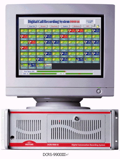 這是多軌專業(yè)型機種,經(jīng)常為金融、公安、客服中心、公共安全單位等等使用。DCRS-9900系列是運用19"機柜型(Rack Mount)工業(yè)級計算機所架設上來產(chǎn)品,基本型系統(tǒng)主機包含2,000小時以上之實時錄音、播放之暫存設備與一臺數(shù)字磁帶機,可儲存400小時錄音之永久儲存設備。錄音主機回路數(shù)可由4回路往上擴充,一臺錄音主機可擴充至64回路(DCRS-9900III)或128回路(DCRS-9900V)。