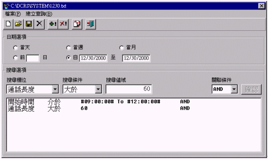 在錄音設備與用戶之程控交換機(PBX)整合條件下,DCRS CT Integra允許用戶以中繼線號碼、分機號碼、開始通話時間、通話長度、撥入電話、撥出電話、服務人員代碼、服務人員姓名、服務人員部門別、撥入群組代碼 (ACD Group ID)、撥號字符串、來話號碼(Caller ID)等等為收尋錄音資料條件。再依您需要找尋條件,重建單位內部人員與外部人員雙方通話內容就輕而易舉。舉例說,您可以在一瞬間就查詢到您所聘雇之客服員張小姐于過去一星期中接到某某公司李先生多少通電話,李先生是什幺時候打來的,張小姐每一通電話花多少時間去服務李先生,其講話的內容又是什幺。