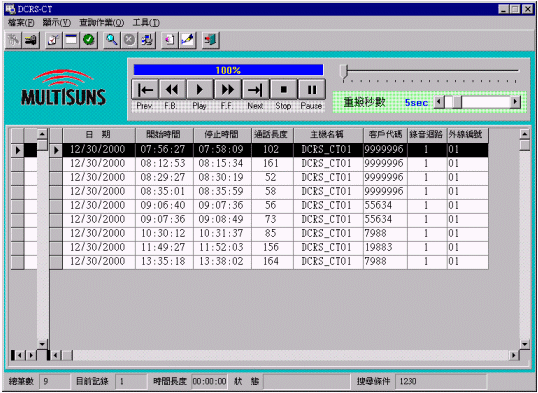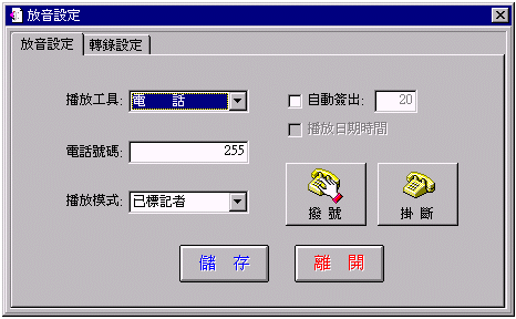 主功能畫面下,點選"錄音播放"按鈕,再點選任何一分機圖標,即進入如下圖所示畫面: