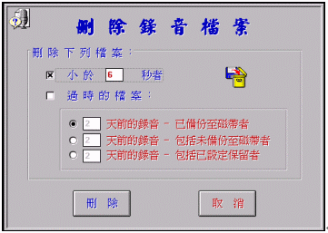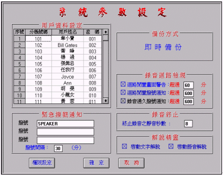 僅限擁有最高操作權限碼之維護人員才能使用。當系統(tǒng)維護需要此功能,隨時可以人工手動的方式刪除硬盤內的語音檔案。
