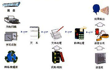 -----按照人類言語(yǔ)功能的不同層次,語(yǔ)言合成也可分成三個(gè)層次,它們是:(1)從文字到語(yǔ)音的合成(Text-To-Speech);(2)從概念到語(yǔ)音的合成(Concept-To-Speech);(3)從意向到語(yǔ)音的合成(Intention-To-Speech)。這三個(gè)層次反映了人類大腦中形成說(shuō)話內(nèi)容的不同過(guò)程,涉及人類大腦的高級(jí)神經(jīng)活動(dòng)。不難想象,即使是按規(guī)則的文字到語(yǔ)音合成(文語(yǔ)合成)也已經(jīng)是相當(dāng)困難的任務(wù)。為了合成出高質(zhì)量的語(yǔ)言,除了依賴于各種規(guī)則,包括語(yǔ)義學(xué)規(guī)則、詞匯規(guī)則、語(yǔ)音學(xué)規(guī)則外,還必須對(duì)文字的內(nèi)容有很好的理解,這將涉及自然語(yǔ)言理解的問(wèn)題。從這一點(diǎn)講,文語(yǔ)轉(zhuǎn)換系統(tǒng)實(shí)際上也可看作一個(gè)人工智能系統(tǒng)。圖1顯示了一個(gè)完整的文語(yǔ)轉(zhuǎn)換系統(tǒng)示意圖。文語(yǔ)轉(zhuǎn)換過(guò)程是先將文字序列轉(zhuǎn)換成音韻序列,再由語(yǔ)音合成器生成語(yǔ)音波形。其中第一步涉及語(yǔ)言學(xué)處理,例如分詞、字音轉(zhuǎn)換等,以及一整套有效的韻律控制規(guī)則;第二步需要先進(jìn)的語(yǔ)音合成技術(shù),能按要求實(shí)時(shí)合成出高質(zhì)量的語(yǔ)音流。因此一般說(shuō)來(lái),文語(yǔ)合成系統(tǒng)都需要一套復(fù)雜的文字序列到音素序列的轉(zhuǎn)換程序,也就是說(shuō),文語(yǔ)轉(zhuǎn)換系統(tǒng)不僅要應(yīng)用數(shù)字信號(hào)處理技術(shù),而且必須有大量的語(yǔ)言學(xué)知識(shí)的支持。當(dāng)然其中語(yǔ)音合成終究還是最基本的部分,它相當(dāng)于“人工嘴巴”,任何語(yǔ)言合成系統(tǒng)包括文語(yǔ)轉(zhuǎn)換系統(tǒng),都離不開語(yǔ)音合成器。