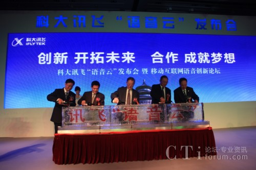 CTI論壇(ctiforum)10月29日消息(記者 潘婷婷): 2010年10月28日,“科大訊飛‘語音云’發(fā)布會暨移動互聯(lián)網語音創(chuàng)新論壇”在北京香格里拉飯店隆重舉行?拼笥嶏w作為中國語音產業(yè)領導者,在業(yè)界率先推出“訊飛語音云”,對于促進國家新近確定的七大戰(zhàn)略新興產業(yè)之一的“新一代信息技術”發(fā)展具有重大意義,將推動移動互聯(lián)網邁入語音時代,創(chuàng)新無限豐富的應用、創(chuàng)造廣闊的市場藍海。因此,此次發(fā)布會得到了各界的高度關注,各相關政府部門領導,聯(lián)想、騰訊、愛國者、優(yōu)視科技、播思通訊等各行業(yè)及移動互聯(lián)網領軍企業(yè)的代表,媒體界朋友,匯聚一堂、共襄盛舉,并就移動互聯(lián)網與語音產業(yè)的相互融合、創(chuàng)新發(fā)展、合力共贏進行了深入熱烈的探討。