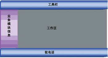 軟電話提供標(biāo)準(zhǔn)的呼叫控制功能,如座席的登錄、注銷(xiāo)等。業(yè)務(wù)模塊信息根據(jù)該座席的技能設(shè)置顯示該座席能夠使用的座席業(yè)務(wù)模塊,工作區(qū)是座席使用業(yè)務(wù)模塊的區(qū)域,業(yè)務(wù)模塊的調(diào)入可以是系統(tǒng)根據(jù)自動(dòng)服務(wù)傳遞的參數(shù)自動(dòng)彈出,也可以是座席人員手工選擇相應(yīng)的業(yè)務(wù)操作。同時(shí),業(yè)務(wù)模塊通過(guò)標(biāo)準(zhǔn)的接口和軟電話模塊進(jìn)行通信,取得或者設(shè)置系統(tǒng)的呼叫參數(shù)或操作,包括提取系統(tǒng)主被叫號(hào)碼、用戶按鍵等。通過(guò)工具欄提供系統(tǒng)的菜單、快捷鍵、快捷按鈕的使用。通過(guò)這種方式,系統(tǒng)可以隨時(shí)增加、修改座席的業(yè)務(wù)模塊,而無(wú)須修改整個(gè)座席端,有利于系統(tǒng)業(yè)務(wù)的分步實(shí)施,大大縮短了系統(tǒng)的整個(gè)建設(shè)周期。