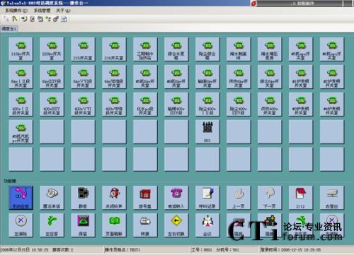 調(diào)度員通過觸摸屏(或者鍵盤鼠標)控制操作調(diào)度系統(tǒng),操作臺可以使用12個功能頁頁面。每個頁面共有22個功能按鍵和55個調(diào)度業(yè)務按鍵,55個調(diào)度業(yè)務按鍵可以根據(jù)具體調(diào)度業(yè)務需要靈活地編輯設置成直通呼叫鍵或組呼鍵。