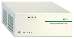MX25 是一種能夠在兩種不同模式下工作的模塊化設(shè)備。在其中一種工作模式下,MX25 是一個通向 PSTN 網(wǎng)關(guān)的獨立 SIP。當在這種模式下工作時,MX25 轉(zhuǎn)換電話呼叫的格式,使其可以在 IP 網(wǎng)絡(luò)與公用電話網(wǎng)絡(luò)之間傳遞。另一種工作模式是,將 MX25 作為 MX250 的功能延伸系統(tǒng),用于不超過 25 個用戶的分支辦公室。在這種配置下,MX25 與 MX250 通信并交換有關(guān)用戶和設(shè)備的信息。即使連接 MX250 和 MX25 的 WAN 鏈路出現(xiàn)故障,MX25 也能繼續(xù)工作并處理來自/發(fā)往 PSTN 的傳入/傳出呼叫。