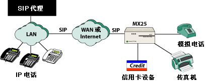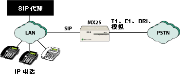 MX25 可以提供模塊化 SIP 網(wǎng)關(guān)的功能,這對于企業(yè)的許多應用程序是很有益的。其撥號計劃實現(xiàn)了多個 SIP 服務(wù)器(內(nèi)部和外部)以及電話電路之間的路由,這使得它幾乎可以在每一個 VoIP 應用程序中工作。