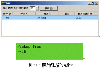 接通后,如果通話內(nèi)容很緊急而又不方便在會議室進行溝通,此時,用戶可以按下話機上的“Park”按鈕,此時對方通話被導入到一段音樂(背景音中設(shè)定的音樂)。記住屏幕上提示的駐留號碼,即可掛機: