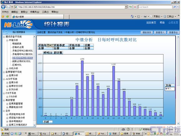 中繼分析之日每時呼叫次數(shù)對比---Hi-link3.0報表應(yīng)用分析