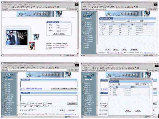 企業(yè)里的每個(gè)用戶要實(shí)現(xiàn)短信發(fā)送,僅需一臺(tái)電腦,然后利用瀏覽器就可以實(shí)現(xiàn)分組發(fā)送(如:會(huì)議通知、緊急通知)、定時(shí)群發(fā)(如:提醒短信、恭賀短信、祝福短信)、以及接收工作情況匯報(bào)短信等,系統(tǒng)提供通訊薄管理,可編輯常用短語(yǔ)。服務(wù)器端支持多個(gè)GSM設(shè)備群發(fā),滿足不同發(fā)送短信量的需要?煨┫螺d系統(tǒng)的動(dòng)畫演示,新增功能多多!。