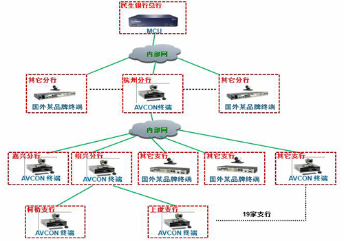 民生銀行杭州分行是民生銀行總行設(shè)在浙江省的一級(jí)分行。為了提高工作效率,增強(qiáng)內(nèi)部溝通,民生銀行杭州分行需要建設(shè)以其為中心并覆蓋所有下屬分支機(jī)構(gòu),具備遠(yuǎn)程、實(shí)時(shí)、交互功能的高清視頻會(huì)議系統(tǒng)。建設(shè)高清視頻會(huì)議系統(tǒng)基于“操作更方便、運(yùn)行更穩(wěn)定、功能更全面、圖像更清晰”原則,充分利用現(xiàn)有民生銀行杭州分行網(wǎng)絡(luò)資源、技術(shù)資源,打造技術(shù)領(lǐng)先、設(shè)備先進(jìn)、效果良好的優(yōu)質(zhì)網(wǎng)絡(luò)視頻會(huì)議系統(tǒng)。從使用上滿足三大主要功能:
