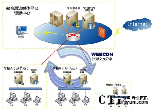 圖:VIEWGOOD WEBCDN流媒體多節(jié)點綜合管理應用平臺教育解決方案網(wǎng)絡架構圖