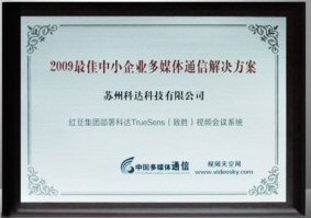 在此次評(píng)選活動(dòng)中,科達(dá)(KEDACOM)為知名服裝企業(yè)紅豆集團(tuán)提供的TrueSens(致勝)視頻會(huì)議解決方案憑借貼近用戶的豐富個(gè)性化視訊應(yīng)用以及為用戶帶來(lái)的卓越溝通體驗(yàn)和巨大商業(yè)價(jià)值獲得2009多媒體通信行業(yè)“最佳解決方案”獎(jiǎng)。
