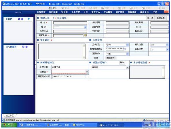 融天科技多媒體呼叫中心可同時支持電話、留言、郵件、傳真、短信、視頻、Web-Call等全方位的服務(wù)模式,包括自動呼叫分配、呼叫排隊、座席分組、客戶資料自動彈屏、運營監(jiān)控、統(tǒng)計分析等全套的呼叫中心功能,座席應(yīng)用界面也是采用非常友好全中文Web方式(下圖為標(biāo)準(zhǔn)界面,融天科技的研發(fā)團(tuán)隊可為您非常靈活的定制企業(yè)個性化的功能及界面):