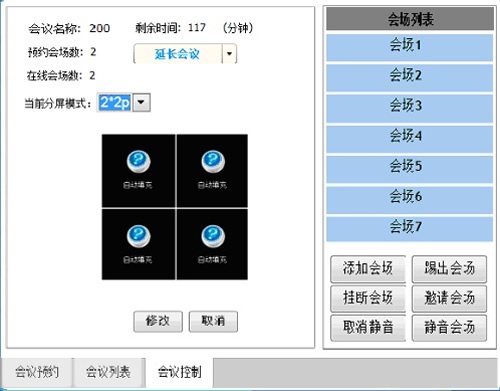 添加一個會場到當前會議當中。點擊“添加會場”按鈕,會出現彈屏,雙擊會場完成添加。