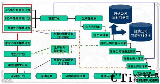 從上圖可以看出,河套酒業(yè)包括股份公司、生產(chǎn)公司、銷售公司、辦事處等獨(dú)立核算的實(shí)體或分子公司,但是實(shí)際上整個供應(yīng)鏈系統(tǒng)是完全集成在一起的。孤立的解決上述問題,只能帶來重復(fù)工作量、公司間相同業(yè)務(wù)不一致以及滯后、市場反應(yīng)不及時等問題。因此跨公司實(shí)體,實(shí)現(xiàn)銷售計劃、生產(chǎn)計劃、采購計劃三大計劃集成、物流集成是白酒類生產(chǎn)企業(yè)供應(yīng)鏈系統(tǒng)信息化的關(guān)鍵。