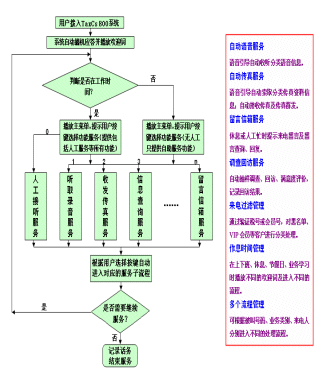 - 提供自動(dòng)聽取錄音信息、索取傳真文件、發(fā)送或接收傳真、語(yǔ)音留言等服務(wù);