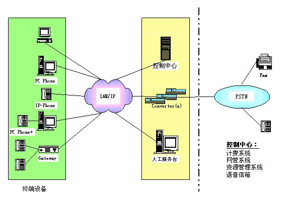 控制中心:包括資源管理系統(tǒng)、計(jì)費(fèi)系統(tǒng)、網(wǎng)管系統(tǒng)、語(yǔ)音信箱。 其中,資源管理系統(tǒng)主要執(zhí)行地址翻譯、權(quán)限控制、路由管理等功能;計(jì)費(fèi)系統(tǒng)主要完成計(jì)費(fèi)及結(jié)算功能;網(wǎng)管系統(tǒng)完成對(duì)網(wǎng)絡(luò)及IP