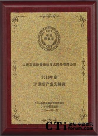 在評選工作中,通過專家評選以及廣大網(wǎng)友投票選舉,高鴻股份數(shù)據(jù)網(wǎng)絡(luò)技術(shù)股份有限公司(以下簡稱“高鴻股份”)憑借自身雄厚實(shí)力和優(yōu)良服務(wù),在2010年的工作得到了大家充分的肯定,喜獲 “IP通信產(chǎn)業(yè)先鋒獎”獎項。