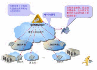 在公安系統(tǒng)中,有時候出現(xiàn)緊急案件,需立刻部署任務(wù),例如要求全市所有民警同時出動進(jìn)行路口封鎖及排查!如果一個一個打電話通知將會很麻煩,如果有電話廣播功能將是很方便的,可以同時接通很多電話,將命令廣播下去。華為3Com公司V2oIP系統(tǒng)在強(qiáng)大的GK支持下,只要事先定義了特服號對應(yīng)的電話號碼群組,撥通特服號就能實(shí)現(xiàn)電話廣播。