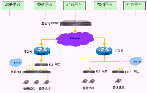 - 建設企業(yè)內部的IP電話系統(tǒng),實現企業(yè)內部各個分支結構之間的免費通話,即總公司之間、各個分支機構之間、總公司與各個分支機構之間通訊免費。由于各地電話環(huán)境不同,各個分支機構在使用內部通話功能時候操作有些差異。