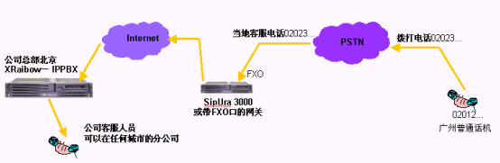 直接使用多模擬中繼線和模擬用戶線的網關,將該網關通過Internet注冊到IPPBX上。這樣您既可以撥打原有的PSTN電話,又可以撥打VoIP電話。