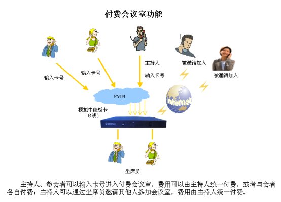 IPPBX的付費會議室適合虛擬運營商或者系統(tǒng)集成商,能為企業(yè)提供付費會議室的專業(yè)服務(wù)。適用于解決企業(yè)的商務(wù)問題的快速決議,公司例會的定期召開,突發(fā)問題的快速處理,以及企業(yè)員工的全面培訓(xùn)。還可以廣泛應(yīng)用于行政會議、遠程教育、商務(wù)會談、遠程醫(yī)療、應(yīng)急通信、聊天等方面,具有廣闊的市場前景。