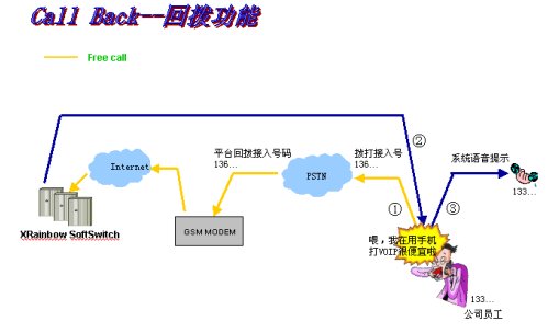 隨著VOIP技術(shù)正的不斷完善,吸引了很多用戶進(jìn)入到VOIP行列中。但是使用VOIP的一個(gè)弊端就在于用戶必須要有網(wǎng)絡(luò),而且要在PC機(jī)上安裝軟件或購買網(wǎng)關(guān)設(shè)備。這樣使用起來就有了很大的局限性。彩虹電信的回?fù)芄δ芫涂梢越鉀Q這個(gè)問題,它的客戶群就可以包括普通PSTN的座機(jī)用戶和手機(jī)用戶。