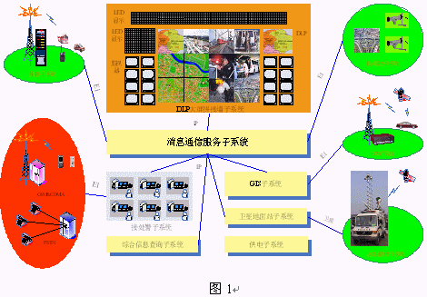 消息隊列服務(wù)器采用國際領(lǐng)先的計算機支持的協(xié)同技術(shù)進行設(shè)計開發(fā),實現(xiàn)三臺合一指揮調(diào)度系統(tǒng)眾多子系統(tǒng)間的無縫集成,包括數(shù)據(jù)流(包括信令)的集成、工作流的集成、應(yīng)用的集成、信息的集成、語音鏈路的集成。它是好易通科技三臺合一指揮調(diào)度系統(tǒng)所有子系統(tǒng)之間進行TCP/IP消息傳遞的中轉(zhuǎn)站,負責(zé)消息的分發(fā)和系統(tǒng)協(xié)同功能。它提供了接處警座席子系統(tǒng)、GIS警用地理信息子系統(tǒng)、集群通信系統(tǒng)、GPS衛(wèi)星定位子系統(tǒng)、視頻監(jiān)控子系統(tǒng)、大屏幕顯示子系統(tǒng)、應(yīng)急通信車子系統(tǒng)、綜合信息查詢子系統(tǒng)之間相互數(shù)據(jù)通信的接口,如圖1所示。
