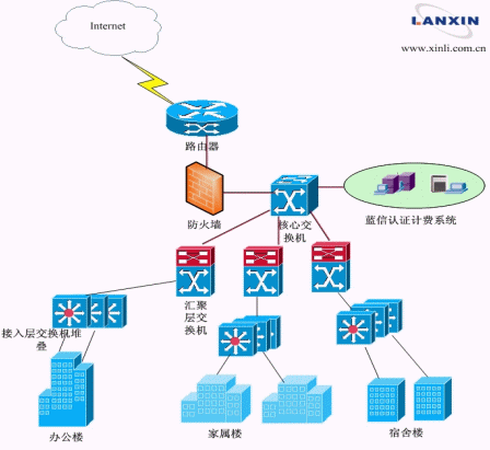 在此形勢下,解放軍后勤工程學(xué)院積極探索,尋求現(xiàn)代校園網(wǎng)建設(shè)的新出路。經(jīng)過對各種方案的收集整理,解放軍后勤工程學(xué)院與重慶電信達成共識,一起共謀現(xiàn)代校園網(wǎng)建設(shè)新模式:重慶電信負(fù)責(zé)提供網(wǎng)絡(luò)帶寬及軟硬件資源,依賴其深厚敦實的技術(shù)后盾及多年豐富的建網(wǎng)經(jīng)驗,攜手信利公司的藍(lán)信認(rèn)證計費系統(tǒng)為校方提供一套從硬件到軟件的完整解決方案,讓廣大師生能快捷方便地享受更加豐富的網(wǎng)絡(luò)服務(wù);而校方依據(jù)當(dāng)前網(wǎng)絡(luò)狀況,可以對使用用戶進行行之有效的管理和維護,徹底解決了校方之憂,開辟了當(dāng)前形勢下的新天地。