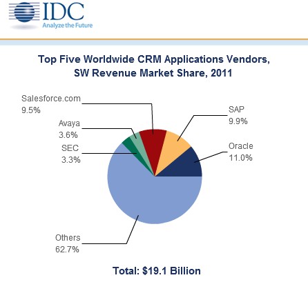 根據(jù)IDC的調(diào)查數(shù)據(jù)顯示,目前就CRM市場(chǎng)來說,Salesforce和SAP正呈現(xiàn)出一種超越甲骨文,奪取領(lǐng)頭羊?qū)氉内厔?shì)。
