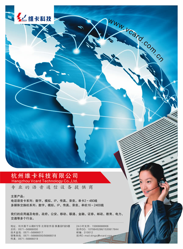 維卡科技有限公司(簡稱“維卡科技”)成立于2004年,是一家以下一代網(wǎng)絡(luò)通信為發(fā)展方向的高科技企業(yè),公司成立于上海,在杭州設(shè)立研發(fā)和生產(chǎn)基地,公司主要從事通信和語音產(chǎn)品的研究、開發(fā)、生產(chǎn)及銷售,是國內(nèi)通信語音產(chǎn)品―――電話語音卡的核心供應商之一。公司匯集一批多年從事CTI技術(shù)研究的高級專業(yè)人才,堅持自主創(chuàng)新,自主研發(fā),不斷推出適合人性化的一流產(chǎn)品,經(jīng)過短短幾年的發(fā)展,公司的語音卡產(chǎn)品已經(jīng)躋身全國三強,為中國的CTI行業(yè)貢獻了一份力量。