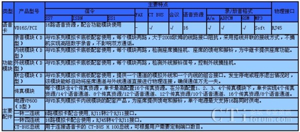 VD系列模擬語音卡采用“通用底板+功能模塊”的模塊化設計,一片卡上備有2~16個待分配的語音通道,可分別配置外線、內(nèi)線、錄音、聯(lián)合、傳真等不同的模塊,組合成不同功能、不同用途的模擬語音卡。該系列語音卡配合高效的DSP處理技術,單卡實現(xiàn)中繼、坐席、錄音、傳真、會議、FSK數(shù)據(jù)收發(fā)、語音合成等多種功能。各類模塊采用DDR2插座連接,插拔極為方便,所有連接均為四重連接,確保無誤。該卡為16線高密度、可靈活配置的模擬語音接口卡,具有多種功能集成于一片卡上的特性。其性能穩(wěn)定、功能強大、性價比極高,適合構(gòu)建大中型規(guī)模的模擬接口應用。