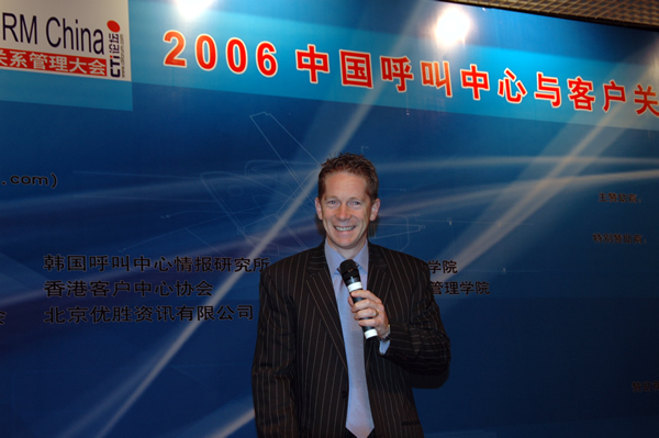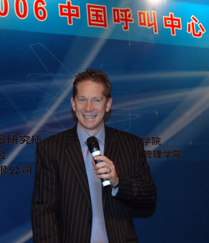 2006年4月3日至5日,2006中國呼叫中心與客戶關系管理大會在北京國際會議中心隆重召開,以下是K8主題演講實錄:西蒙.克瑞斯:早上好!這是我的助手,大家歡迎!我想傳達呼叫中心的問題節(jié)奏會快一點,有高級呼叫中心十個課題。不是對初學者的,也不是對新呼叫中心的,是幫助呼叫中心行業(yè)能夠成熟的,也就是說呼叫中心行業(yè)的兒童不宜的題材!人人談呼叫中心的時候就談到這個模型(PPT)三個因素,人、流程和技術。但是這個模型沒有包括真正只有戰(zhàn)略意義的呼叫中心的因素,這個模型對運行家、工廠是非常有效的。現(xiàn)在我們用的這個模型是叫(PPT)模型,F(xiàn)在言歸正傳,開始!