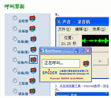 WCS3050主要提供Web點(diǎn)擊呼叫功能,當(dāng)用戶(hù)在瀏覽企業(yè)網(wǎng)站或網(wǎng)絡(luò)廣告的時(shí)候,通過(guò)點(diǎn)擊該企業(yè)的聯(lián)系電話(huà),甚至企業(yè)標(biāo)識(shí)等其它標(biāo)志,直接下載安裝特定的控件后就可以通過(guò)電腦打電話(huà)到該企業(yè)服務(wù)中心,大大方便了用戶(hù)對(duì)企業(yè)及其產(chǎn)品的進(jìn)一步了解,更加促進(jìn)了企業(yè)的市場(chǎng)銷(xiāo)售和宣傳。