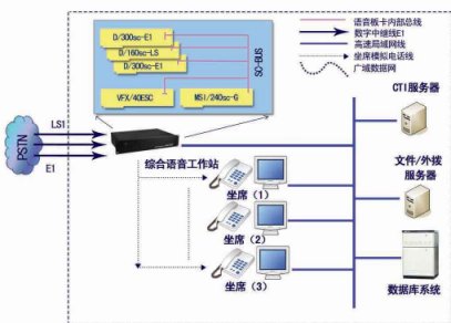 一體化板卡方案是用勤針對企業(yè)級用戶而專門量身定制的呼叫中心產(chǎn)品,主要由工業(yè)用控制計(jì)算機(jī)(工控機(jī))加插語音板卡以及板卡的驅(qū)動(dòng)控制軟件實(shí)現(xiàn)電話語音交換機(jī)能力。綜合語音工作站相當(dāng)于一臺小的交換機(jī),內(nèi)置 CTI 控制、 ACD 排隊(duì)、 IVR 、錄音等功能。組網(wǎng)方式: