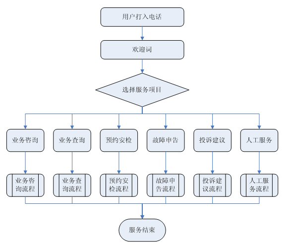 系統(tǒng)應(yīng)該提供開放的接口,以實(shí)現(xiàn)與各種應(yīng)用系統(tǒng)的無(wú)縫集成。以下為呼叫中心基本業(yè)務(wù)需求,其中短消息、Email、web方式為選配,呼叫中心系統(tǒng)應(yīng)支持上述方式,方便以后平滑升級(jí)。