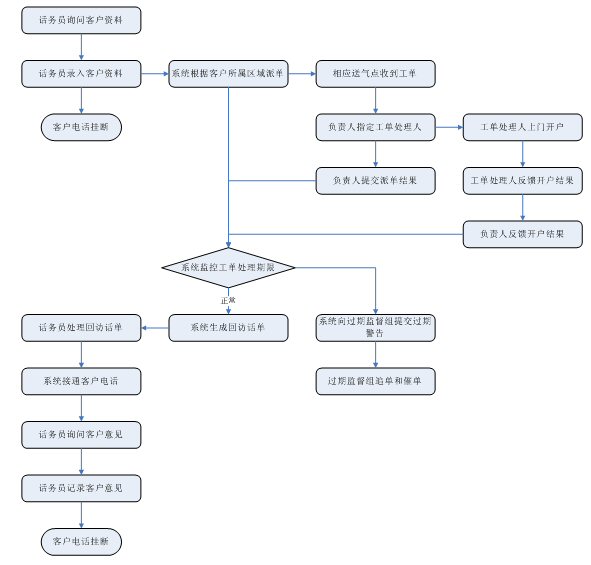 投訴受理:通過人工、自動(dòng)語(yǔ)音、短信、傳真、Email、web等方式受理各種用戶投訴,并可以工單的方式流轉(zhuǎn)到相關(guān)的部門進(jìn)行處理,并記錄處理過程和跟蹤處理結(jié)果。能夠處理從上級(jí)部門、消協(xié)等方面轉(zhuǎn)過來(lái)的用戶投訴。