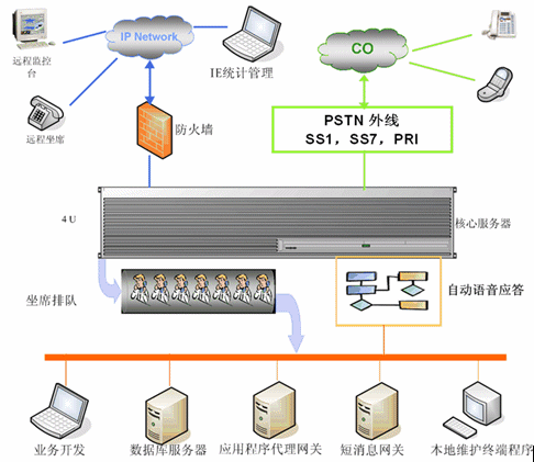 中科訊博 Dr-Tels中間件平臺結合當前聲訊特點,使CTI(Computer Telecommunication Intergration )技術和Internet技術相融合,以開放式結構結合各業(yè)務單元及數據庫系統(tǒng)的應用平臺,提供綜合性的語音服務和互聯(lián)網服務。