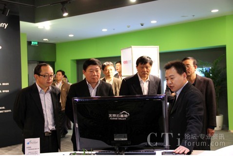 CTI論壇(ctiforum)3月29日消息(記者 潘婷婷):3月11日下午,上海市副市長(zhǎng)艾寶俊、市經(jīng)信委主任王堅(jiān)、市經(jīng)信委軟件和信息服務(wù)業(yè)處處長(zhǎng)朱宗堯等一行人專程來(lái)北京云基地,在寬帶資本董事長(zhǎng)田溯寧、云基地公司董事長(zhǎng)趙安建等人的陪同下對(duì)云基地進(jìn)行了參觀和考察。