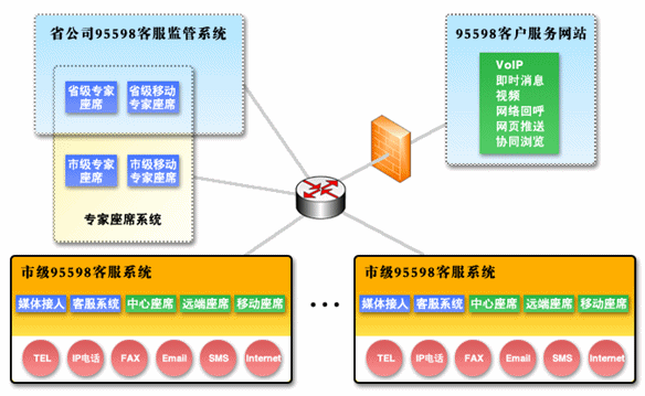 在電力客戶服務中心系統(tǒng)解決方案中,我們采用了更加先進的第四代呼叫中心系統(tǒng)作為客服系統(tǒng)的平臺。可以實現(xiàn)的客戶聯(lián)絡方式已經(jīng)不僅僅局限于傳統(tǒng)的語音和傳真的呼叫形式,網(wǎng)絡電話、網(wǎng)絡傳真、Email、短消息、即時消息、互聯(lián)網(wǎng)應用等都是與客戶聯(lián)絡的重要方式,涉及到的媒體載體也不僅是PSTN,還有基于VoIP技術的現(xiàn)代網(wǎng)絡、無線網(wǎng)絡等;也就是說第四代呼叫中心系統(tǒng)是一個融合網(wǎng)絡、語音、數(shù)據(jù)庫、視頻和安全技術的綜合信息服務平臺。整個95598電力客戶服務系統(tǒng)是由呼叫中心子系統(tǒng)和業(yè)務處理子系統(tǒng)共同構成。
