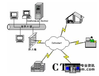 視頻會議服務器設(shè)置在上?偛,通過電信的6M帶寬接入互聯(lián)網(wǎng),并配備有廣域網(wǎng)靜態(tài)IP地址。下屬生產(chǎn)基地和分支機構(gòu)通過電信ADSL接入和光纖接入等方式接入互聯(lián)網(wǎng)。這些點能夠?qū)崿F(xiàn)網(wǎng)絡(luò)視頻會議通訊,進行音頻、視頻和數(shù)據(jù)的多方溝通。