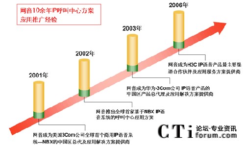 2001年,網(wǎng)音成為美國3Com公司全球首個(gè)商用IP語音系統(tǒng)—NBX的中國區(qū)總代及應(yīng)用解決方案提供商。