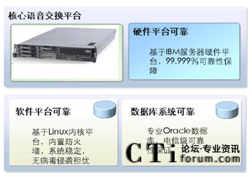 “網(wǎng)音托管”的核心IP語音平臺(tái)采用采用全球頂級(jí)的 VCX V7000系列IP語音交換平臺(tái),基于IBM服務(wù)器硬件平臺(tái)、專業(yè)Oracle數(shù)據(jù)庫、基于Linux內(nèi)核平臺(tái),內(nèi)置防火墻,提供電信級(jí)可靠保證。同時(shí)還擁有一套引以自豪的應(yīng)用軟件開發(fā)管理規(guī)范。各部分模塊都是經(jīng)過多年應(yīng)用的成熟產(chǎn)品,充分保證了系統(tǒng)的穩(wěn)定性和可靠性。