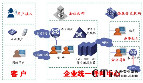 該結(jié)構(gòu)是將呼叫中心的全部設(shè)備(設(shè)備由網(wǎng)音提供)都部署在用戶現(xiàn)場,用戶可以以企業(yè)總部為核心部署遠(yuǎn)點(diǎn)坐席及遠(yuǎn)端接入。
