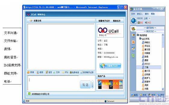 支持包括IM(即時(shí)通訊)、短信等跟語(yǔ)音的融合。座席人員可以同時(shí)使用IM、電話、短信等跟用戶溝通。