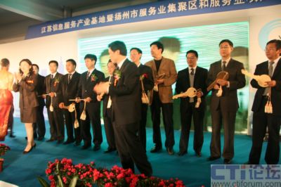 4月21日,江蘇信息服務(wù)產(chǎn)業(yè)基地暨揚州市服務(wù)業(yè)集聚區(qū)和服務(wù)業(yè)項目推介洽談會在江蘇信息服務(wù)產(chǎn)業(yè)基地(揚州)隆重召開,省信息產(chǎn)業(yè)廳副廳長龔懷進(jìn)、揚州市委常委、常務(wù)副市長張京霞為省信息安全技術(shù)中心揭牌,中國網(wǎng)通集團(tuán)公司總工程師滕勇,神州數(shù)碼高級副總裁陳勇,上海萬得信息股份董事長陸風(fēng)等數(shù)十位集團(tuán)公司老總現(xiàn)場祝賀,同時IBM、AVAYA、優(yōu)勝資訊、神州數(shù)碼等60多家企業(yè)現(xiàn)場簽定了投資合作協(xié)議,而華潤通信、中國電信、酒店無憂、漢世紀(jì)等10家企業(yè)則從廣陵區(qū)委書記孔令俊手中接過了入駐金鑰匙,成為首批入駐江蘇信息服務(wù)產(chǎn)業(yè)基地的企業(yè),至此江蘇信息服務(wù)產(chǎn)業(yè)基地迎來首發(fā)項目招商的“開門紅”,江蘇信息服務(wù)產(chǎn)業(yè)基地也因此被業(yè)界冠以中國首家專業(yè)定位信息呼叫和數(shù)據(jù)處理產(chǎn)業(yè)的“中國聲谷”的美譽。 “江蘇信息服務(wù)產(chǎn)業(yè)基地(揚州)”位于廣陵新城內(nèi),為省信息產(chǎn)業(yè)廳與揚州市政府聯(lián)手打造的中國首家專業(yè)定位于呼叫信息和數(shù)據(jù)處理產(chǎn)業(yè)的省級信息服務(wù)業(yè)基地,占地2.52平方公里,總投資50億元,處于揚州ECBD核心區(qū)域,交通便捷,區(qū)位優(yōu)勢獨特,生態(tài)環(huán)境優(yōu)美;匕凑铡爱a(chǎn)業(yè)社區(qū)”的標(biāo)準(zhǔn)和“商務(wù)公園”的理念規(guī)劃建設(shè),重點發(fā)展信息服務(wù)產(chǎn)業(yè)及具有揚州特色的城市信息化應(yīng)用軟件和嵌入式軟件產(chǎn)業(yè),立足長三角、面向全國、服務(wù)世界,逐步發(fā)展成為全國乃至世界呼叫中心產(chǎn)業(yè)最佳實踐基地、全國生產(chǎn)性服務(wù)業(yè)的標(biāo)桿示范基地及呼叫中心人才培訓(xùn)與派遣基地。