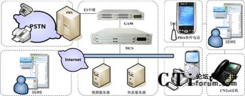 4)該系統(tǒng)支持多類(lèi)終端,辦公人員不僅可以通過(guò)登陸SEME辦公軟件在線辦公,還可以配備臺(tái)式CN2x4VOIP電話、在PC上安裝SP3軟件電話及使用帶有WIFI功能的手機(jī)進(jìn)行VOIP免費(fèi)通話。