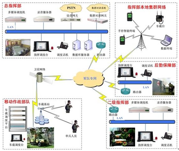 以指揮、控制、通信、計算機、情報等為代表的自動化通信指揮系統(tǒng)是現(xiàn)代軍事指揮系統(tǒng)的神經(jīng)中樞。而確保神經(jīng)中樞融合和通暢,多媒體指揮調(diào)度系統(tǒng)正是實施貫徹這一步驟的關(guān)鍵。